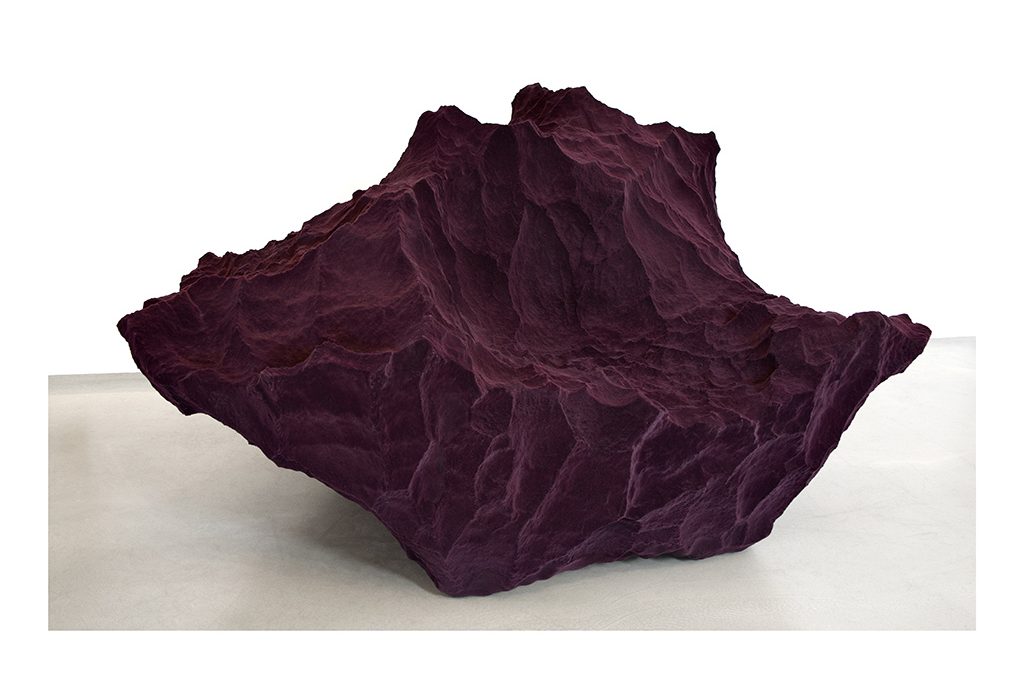 Species II, la seduta che sembra scolpita nella roccia. In realtà è in poliuretano, gomma e fibra di vetro [Davidgill, cm 150x120x90h prezzo su richiesta].