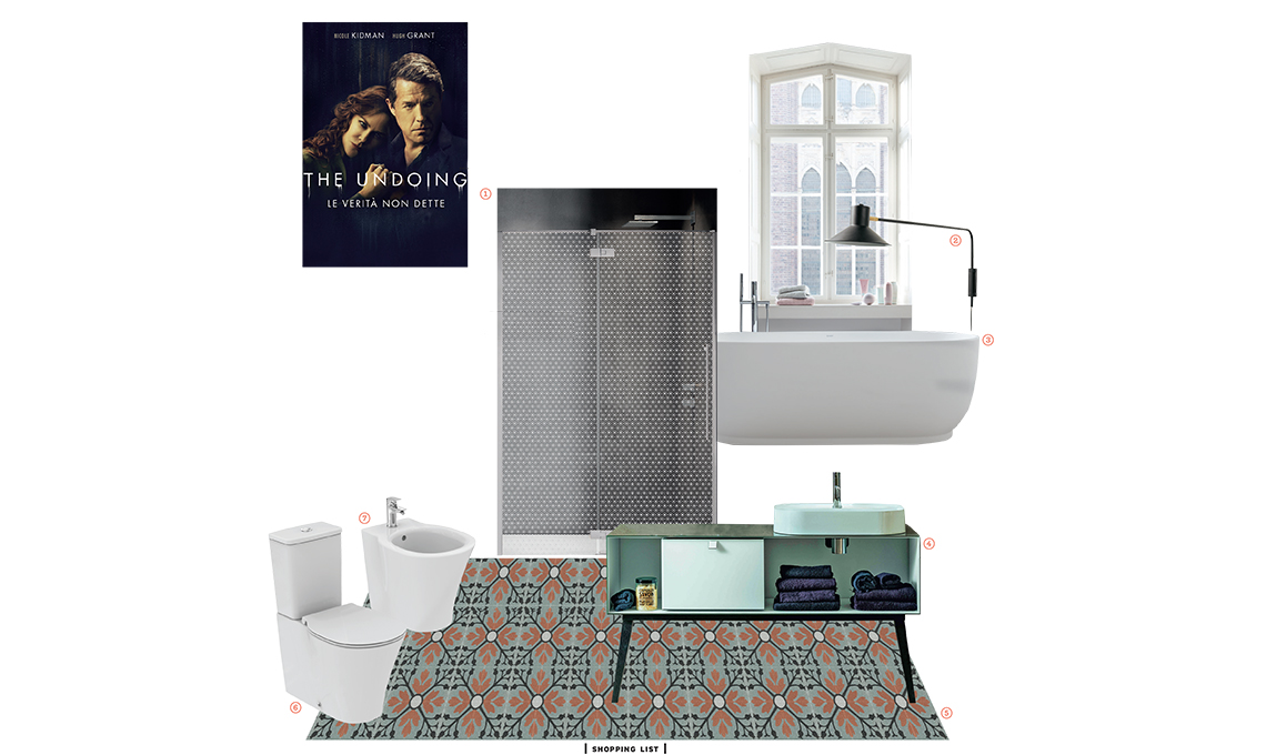 Il pavimento old style è il punto di partenza per realizzare un ambiente con vasca a centro stanza, più mobili e decori di ispirazione vintage di grande eleganza che strizza l'occhio a The undoing. Grace e Jonathan, affermati professionisti dell’upper class newyorkese, conducono una tranquilla vita di famiglia apparentemente perfetta, che viene sconvolta quando lui risulta essere il principale sospettato dell’omicidio della madre di un compagno di classe del figlio Henry [HBO, su Sky].