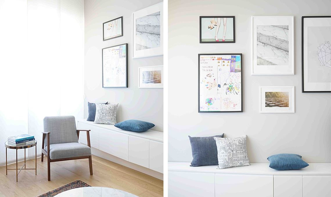 La prima idea è di non accumulare in un cassetto i disegni di infanzia dei vostri bambini, ma anzi di valorizzarli, scegliere una bella cornice e appenderli al muro, perché non c’è niente di più colorato, unico e pieno di significato. In questo modo i disegni dei vostri piccoli diventeranno delle vere e proprie opere d’arte. Il consiglio è quello di accostarli ad altre stampe più neutre con colori armonici e sintonici con i disegni.
