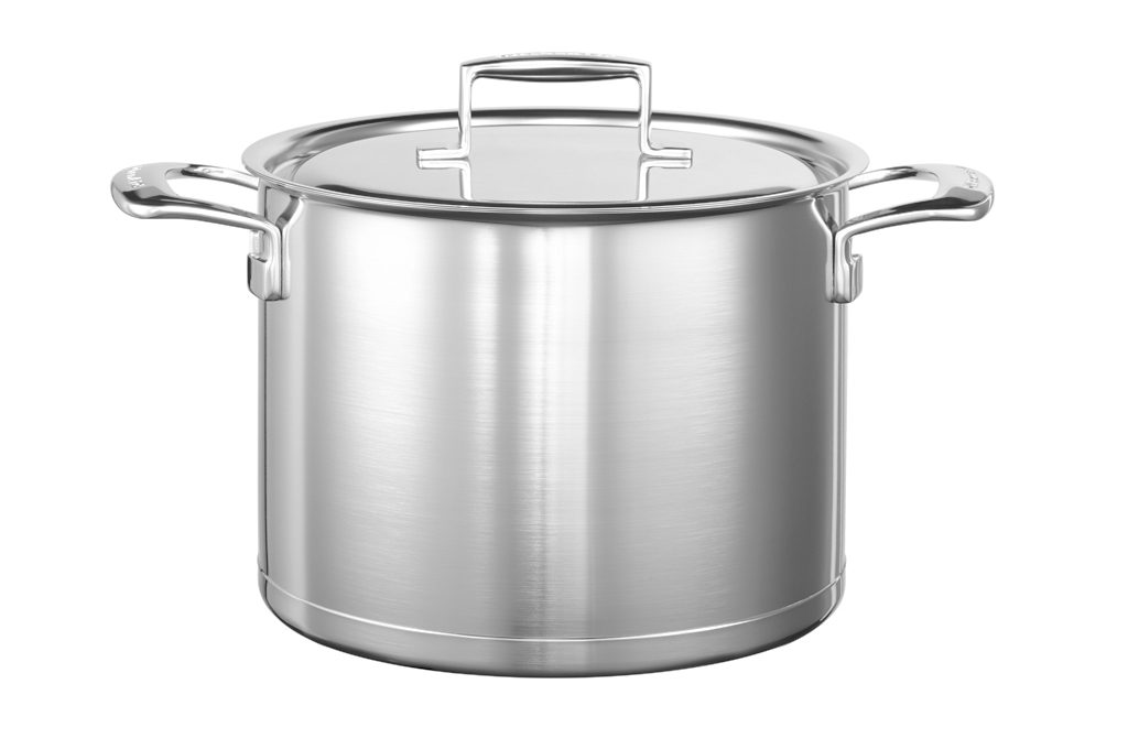 Sette strati in acciaio più alluminio per la pentola adatta a ogni tipo di piano cottura [KitchenAid, Ø cm 24 €150].