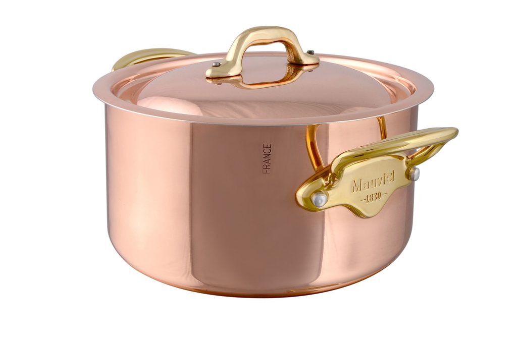 Rame rivestito in acciaio inox per la casseruola M’Heritage [Mauviel, Ø cm 24 €422,20].