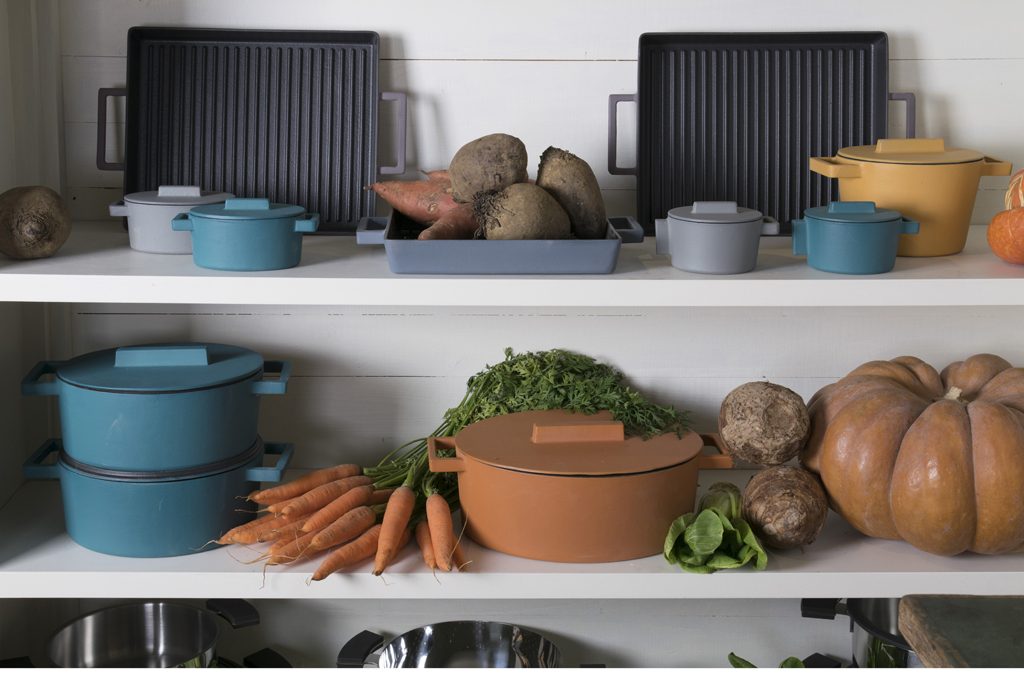 Casseruole più coperchi della collezione Terra.Cotto in ghisa, in tanti colori naturali [Sambonet, da cm 13x10 da €44,90].