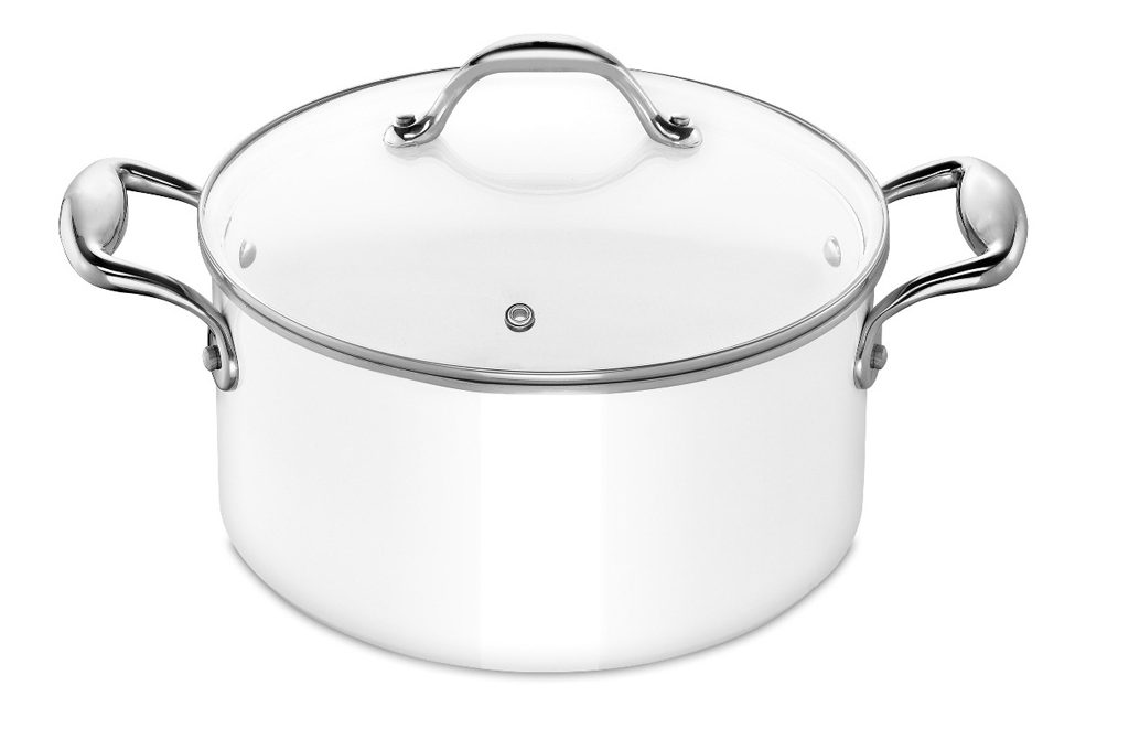 Rivestimento in ceramica bianca per la casseruola Accademia [Lagostina, Ø cm 20 €69].