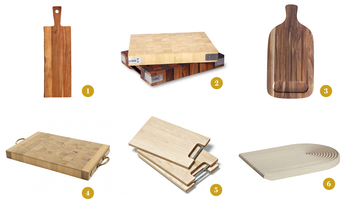 1.Tagliere in legno di acacia [Kasanova, 15,3x50,8cm, €14,90] 2. Tagliere in legno massello [La Cornue by Billot Chabret, prezzo su richiesta] 3. Artesano Original tagliere vassoio [Villeroy & Boch, 51x25cm, €42,90] 4. Tagliere in legno massello TGL009 [Officine Gullo, 49x60cm, prezzo su richiesta] 5. Tagliere in acero naturale con manico a barra in acciaio [Bulthaup, 31x45cm, prezzo su richiesta] 6. Tagliere Field [Hay, 33x25cm, €49]