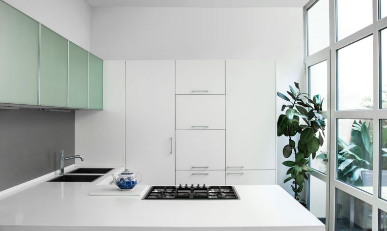 40. Se non puoi tenere i piccoli elettrodomestici a vista, dedica loro una base e applica un cestone estraibile nella parte bassa in modo da lasciare l’altezza necessaria. Lì potrai raggruppare frullatore, tritatutto, centrifuga, planetaria, ecc. In alto ti resterà lo spazio per una mensola o per un altro vano estraibile per i loro accessori