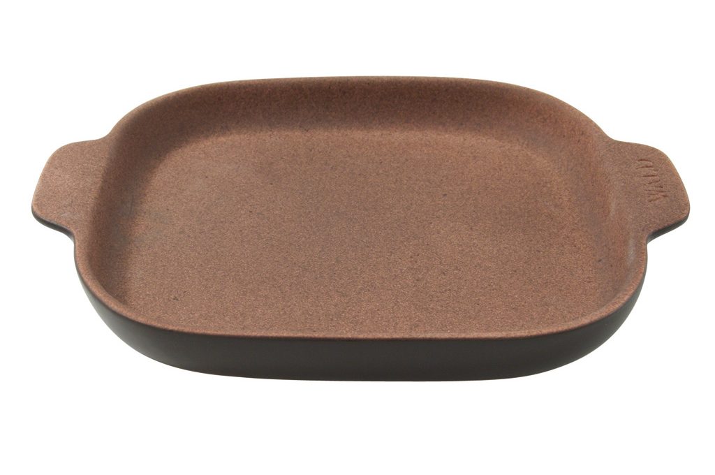 L'argilla naturale della piastra Panfantasia esalta il gusto del pane fatto in casa, come su un 'testo' sulla brace [Wald, cm 22,5x22,5x3h, con spargifiamma €44]