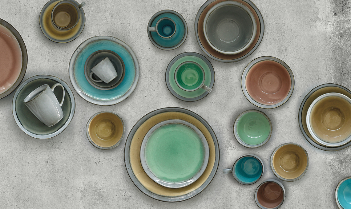 Origin è la collezione artigianale di piatti in grès con effetto craquelé e pennellate di colore dalla finitura realizzata a mano che rende ogni elemento un pezzo unico [Easy Life da €6 la ciotola da cm 11 di diametro].