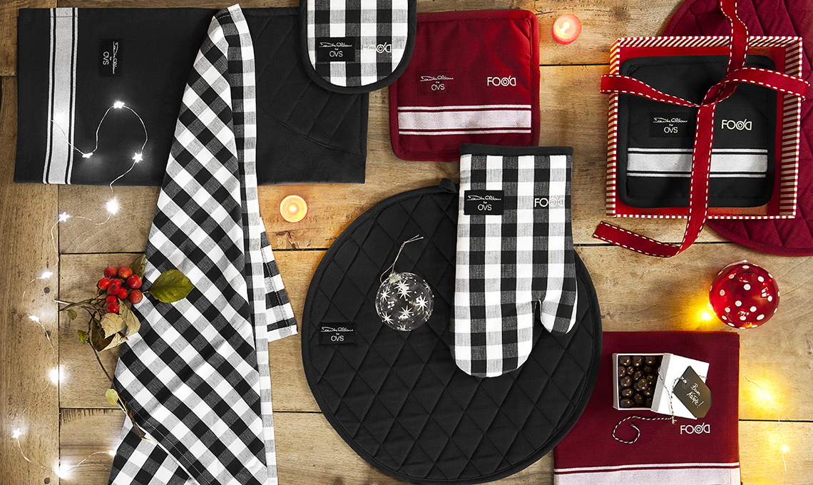 Lo chef stellato Davide Oldani ha firmato la ‘capsule collection’ Davide Oldani for OVS, che include guanti forno [€5,99], presine [€3,99], canovacci [€4,99], americane [€7,99] e tovaglioli [€3,99]. Di [OVS].