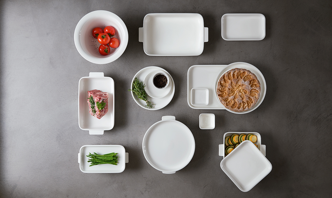 in ceramica ha 3 funzioni: teglia da forno, piatto da portata, contenitore per conservare i cibi