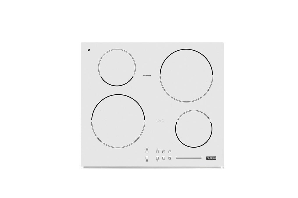 A induzione FH 604-1E 4I TPWL, in vetro bianco, ha potenza regolabile con comandi touch, riconosce le pentole automaticamente ed è dotato di sistema di sicurezza per i bambini [Franke, cm 58x51 €1.018].