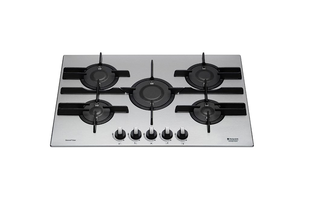 Piano a gas: PK 755D GH E X/HA ha il bruciatore Direct Flame: è un unico componente ultrapiatto che irradia la fiamma in verticale tramite 420 microfori: il calore si propaga uniformemente [Hotpoint Ariston, cm 75x51 prezzo da rivenditore].