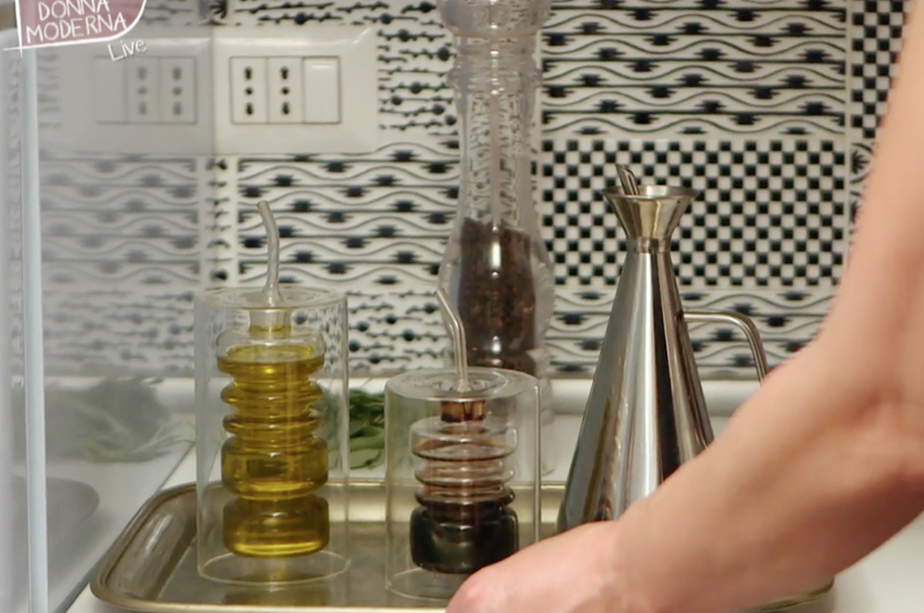 Anche i condimenti, su un bel vassoio sul piano della cucina, possono diventare elementi di decoro. Sarà anche un sistema comodo per portarli in tavola.