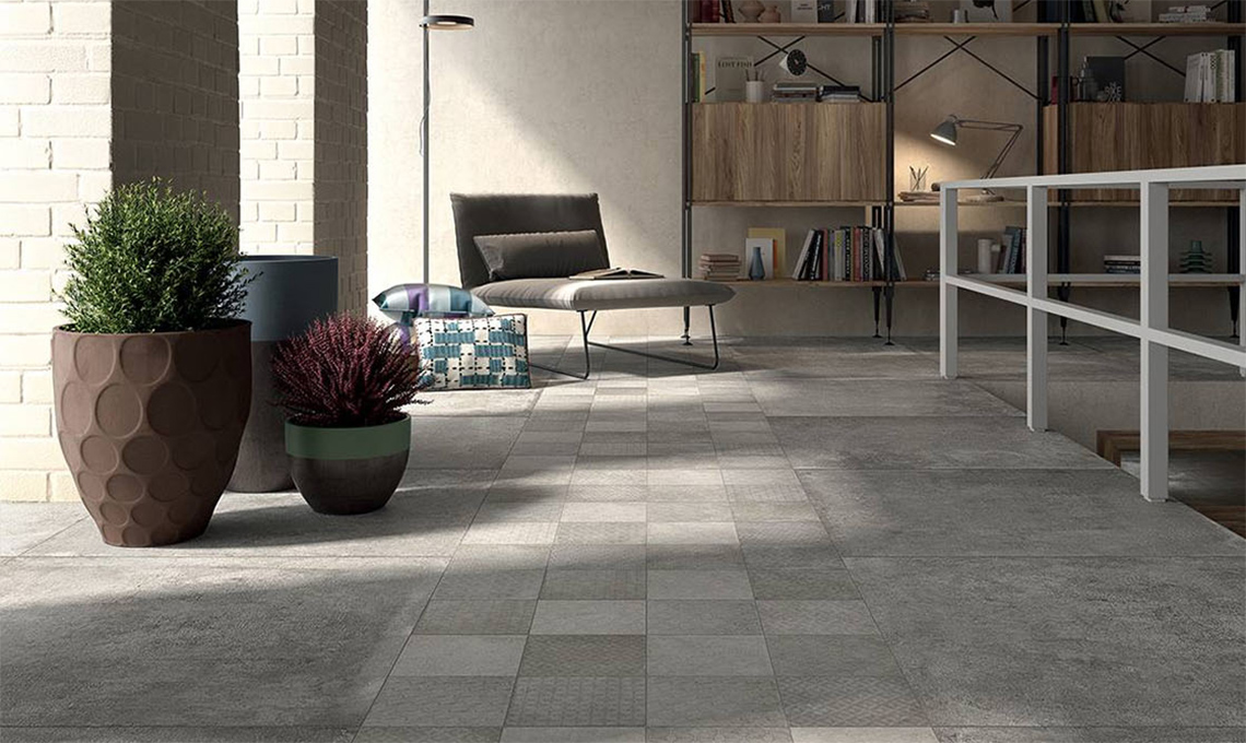 Per creare una barriera contro i microorganismi che inevitabilmente popolano il pavimento della cucina, serve una ceramica antibatterica. Come Opificio 22/A Trame Chiaro Protect®: a base di ioni d’argento attivi H24, elimina fino al 99,9% dei batteri presenti sulla superficie [Panaria Ceramica].