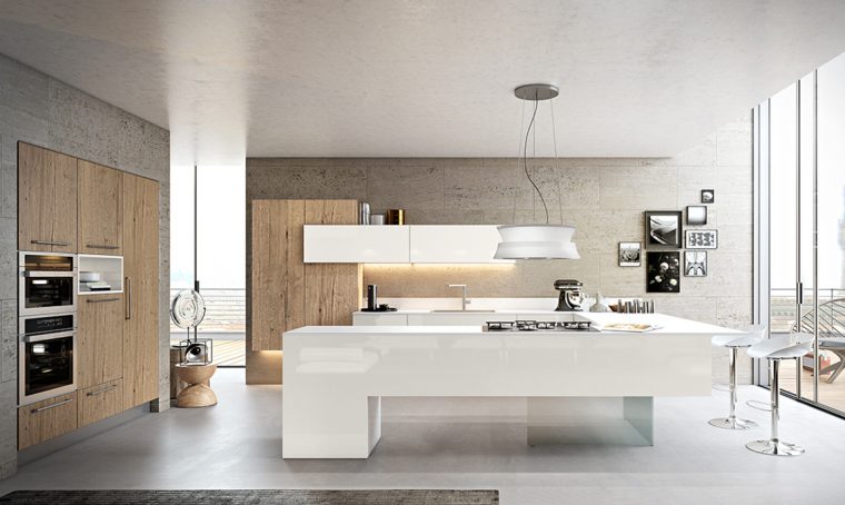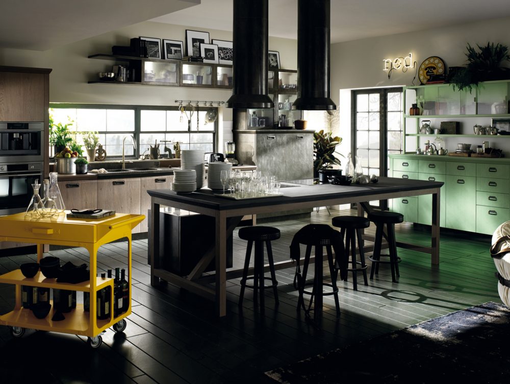 Inserire in questo ambiente qualche elemento che può sembrare fuori contesto,come uno specchio, qualche opera d'arte e del verde, aiuta ad aprire i confini tra la cucina ed il resto della zona giorno, creando una sorta di area continua polifunzionale. A maggior ragione se la zona giorno è un open space.