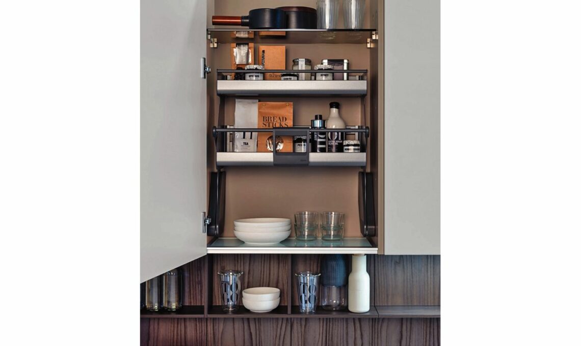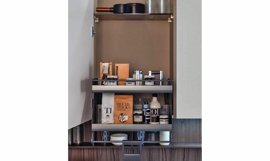 La cucina pratica deve essere utilizzata a tutte le età, quindi perché non attrezzarla con sistemi che ne agevolino l’uso? Come l’elemento estraibile iMove finitura antracite per i pensili: con un semplice gesto, i ripiani si muovono verso il basso e in avanti e prenderne il contenuto è facilissimo!