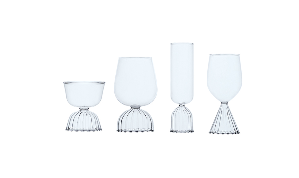 - Calici e coppetta in vetro della collezione Tutù di Mist-o Design di Ichendorf.