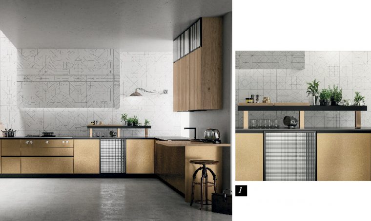 Molto spesso a chi non ama il colore viene d’impatto proposta una cucina nera o bianca, tralasciando le tonalità più neutre e legate ai colori della terra che, invece, soprattutto se abbinate a essenze legnose chiare e fiammate, danno grande personalità e charme all’ambiente. Soluzione che, oltretutto, dona calore anche al resto del living quando questo è tutt’uno con la cucina. Come avviene per Modula Line Over di Febal Casa, qui nella versione cachemire per le colonne e Fossil wood per le basi dell’isola che scaldano, assieme ai profili champagne i moduli a vetro. Un nuovo classico raffinato e durevole.
