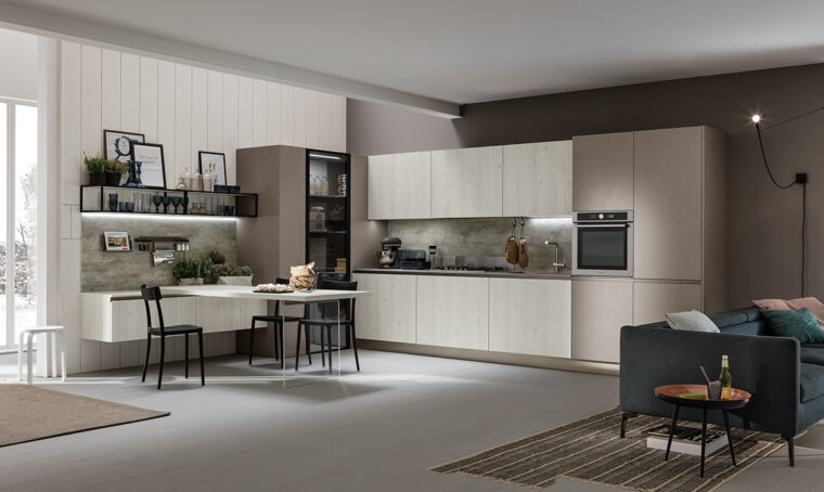 Se non ami il colore, oltre alla cucina nera o bianca puoi optare per le tonalità neutre. Scopri con noi il modello Modula Line Over di Febal Casa