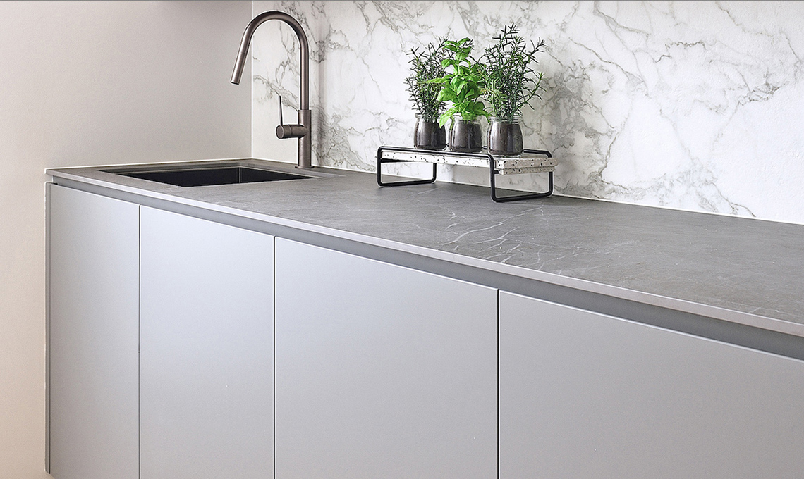 Maxi-lastre in materiale ceramico spesso 12 mm, adatte al contatto con gli alimenti; resistono al calore delle pentole, a prodotti chimici, graffi, abrasioni profonde, muffe, macchie e variazioni cromatiche.