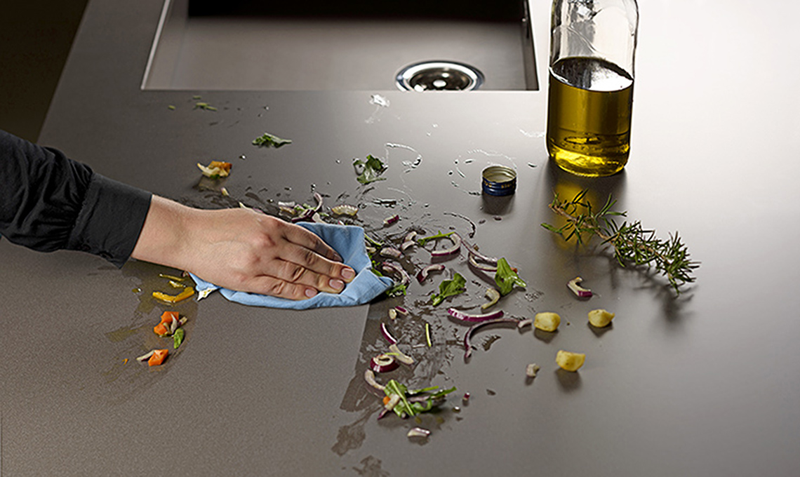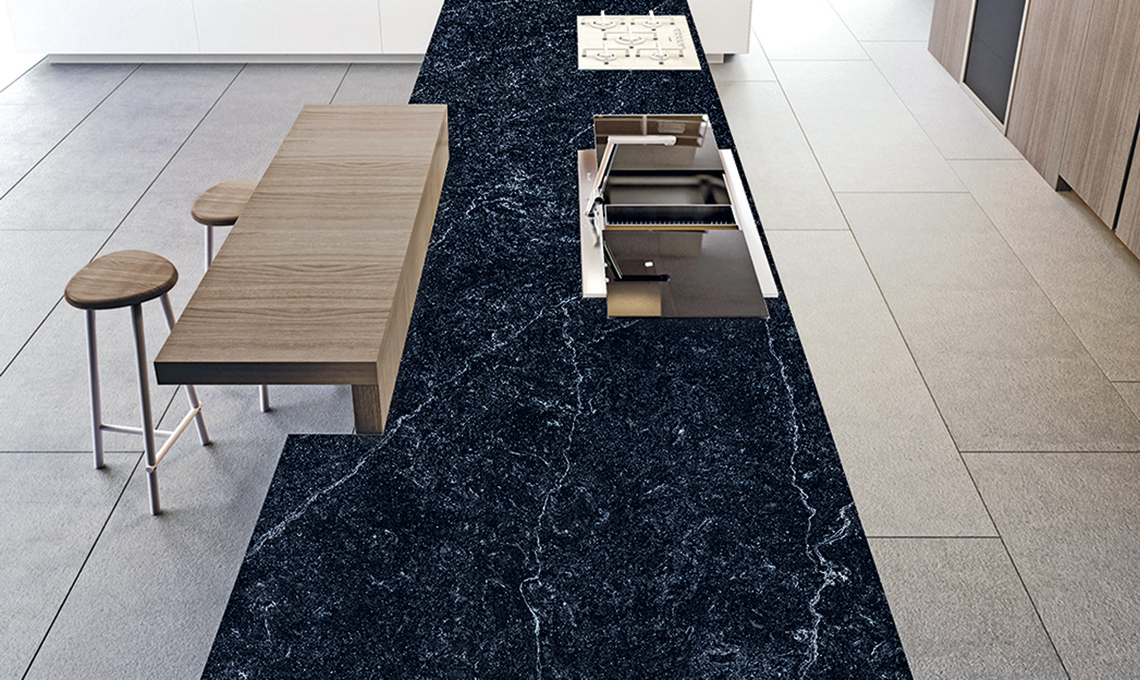 Composto per oltre il 90% da quarzo, resiste molto bene a calore, tagli, graffi e macchie di caffè, limone e aceto.