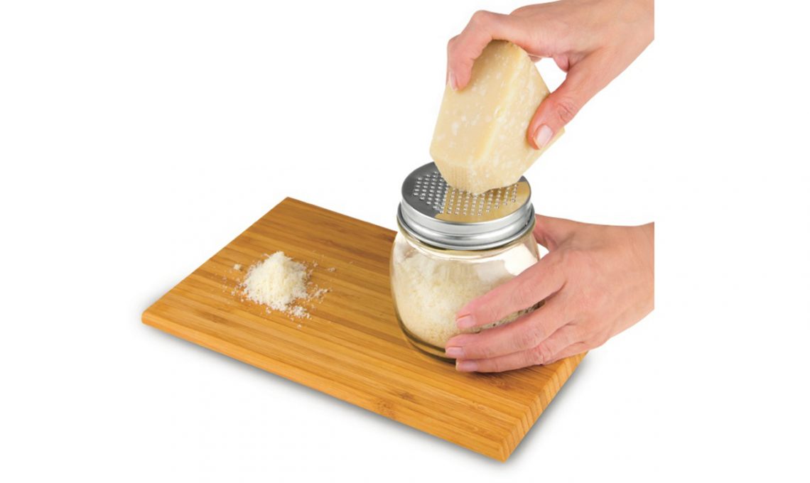 E il tappo grattugia: grattugia il formaggio, raccoglilo direttamente nel barattolo e servi in tavola con originalità!