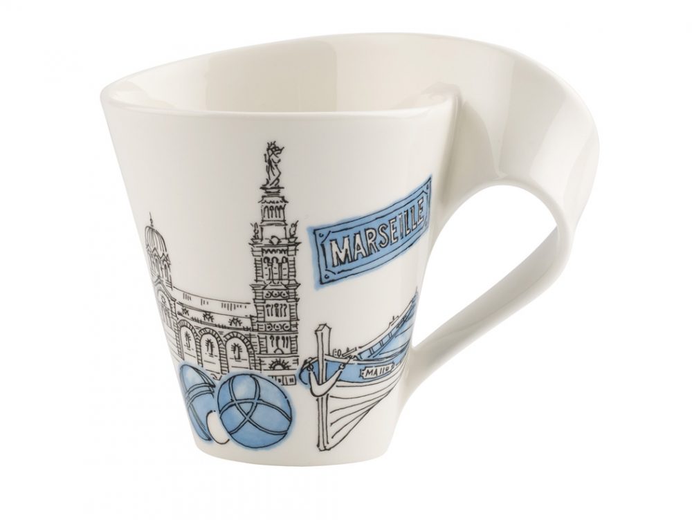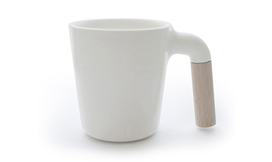 Gocce, è in porcellana con il manico in acrilico in diversi colori[Guzzini €22,50/set da 2 mug].