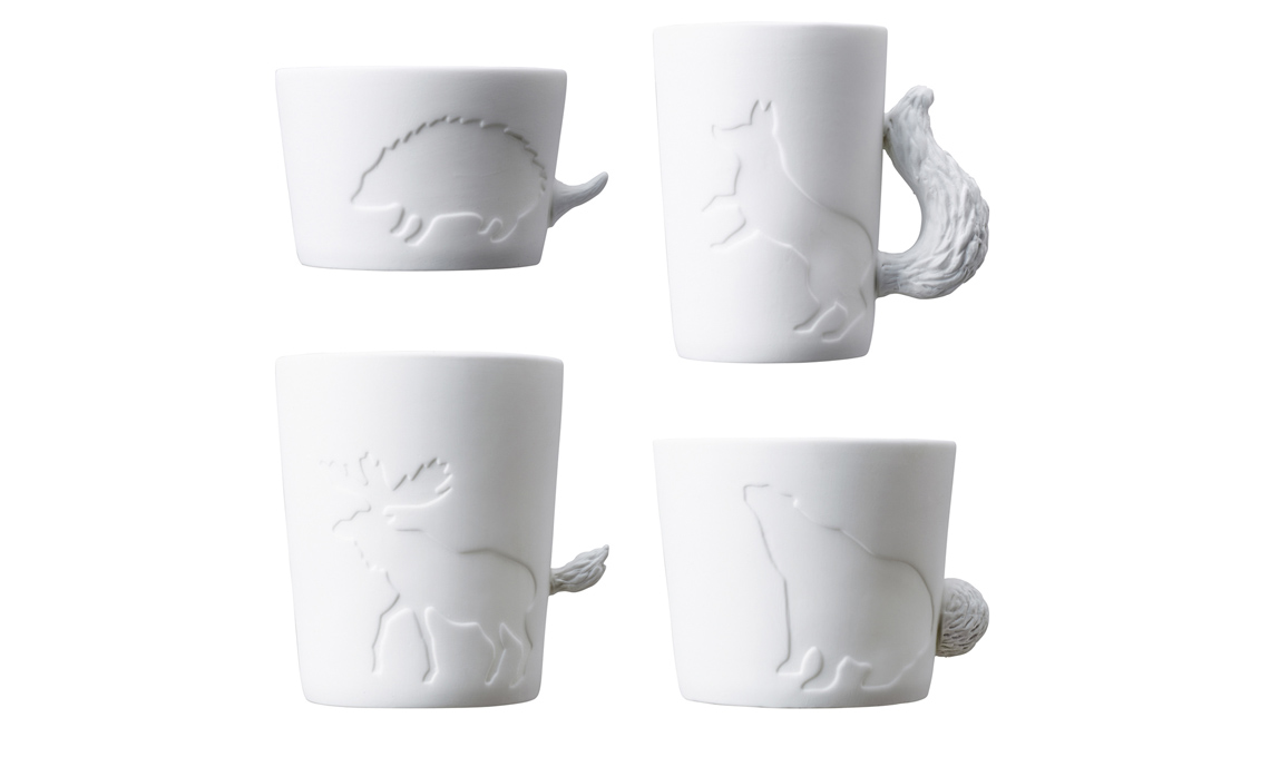 Quattro tazze impilate formano il disegno di una bambola giapponese Kokeshi, sono disponibili anche altri due soggetti [Maxwell & Williams €19,95 ca].
