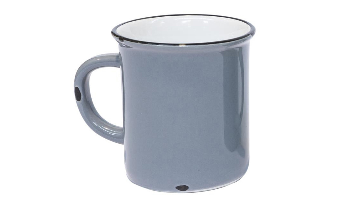 Sembra artigianale la mug con l'interno blu e l'esterno decorato con la tecnica dripping [Flying Tiger Copenhagen €4].