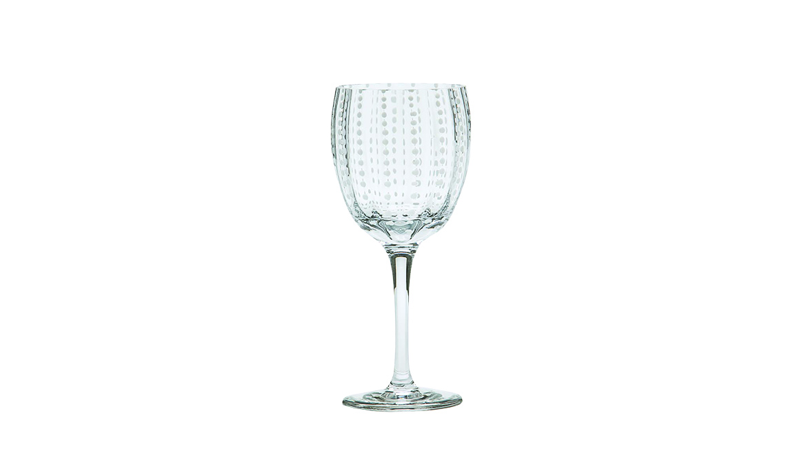 • Calice da vino Perle, in vetro lavorato a rilievo [Zafferano 30,50]