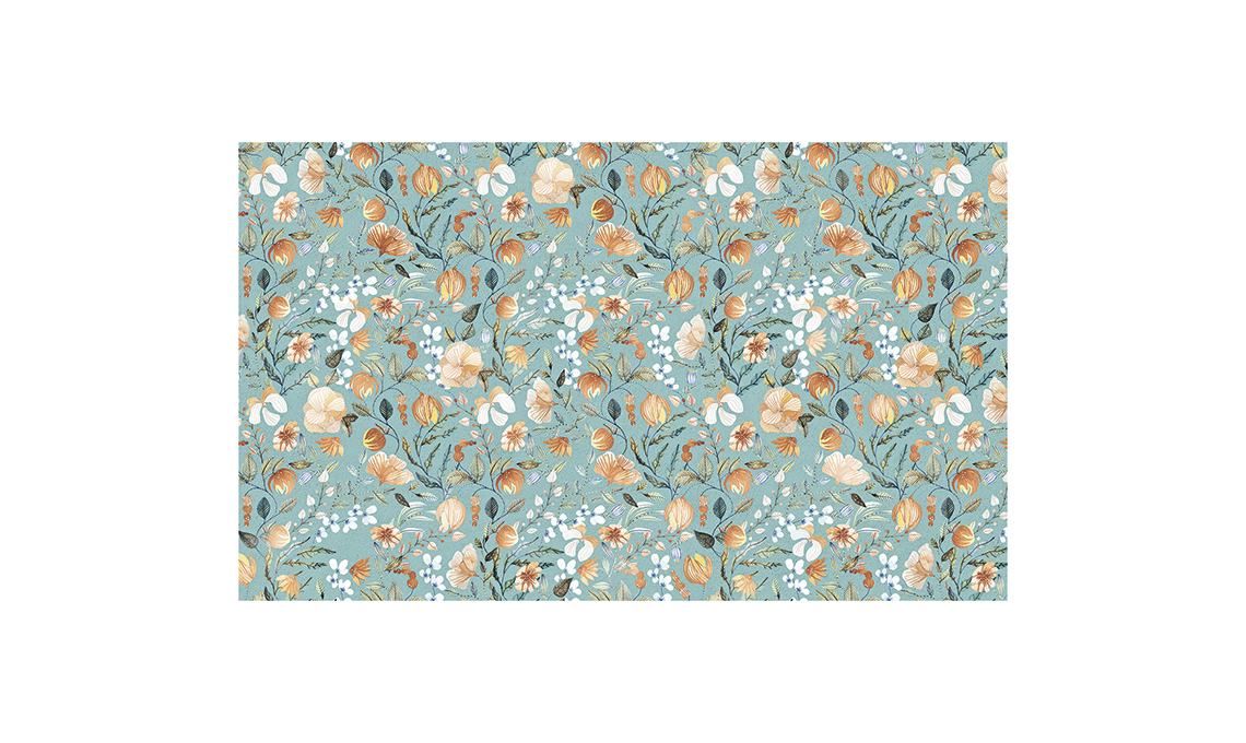 5. Cottagecore. Un’esplosione di fiori di campagna su fondo azzurro che fanno subito country per Journey decoro Springtime, in formato cm 60x120 [Ceramiche Keope].