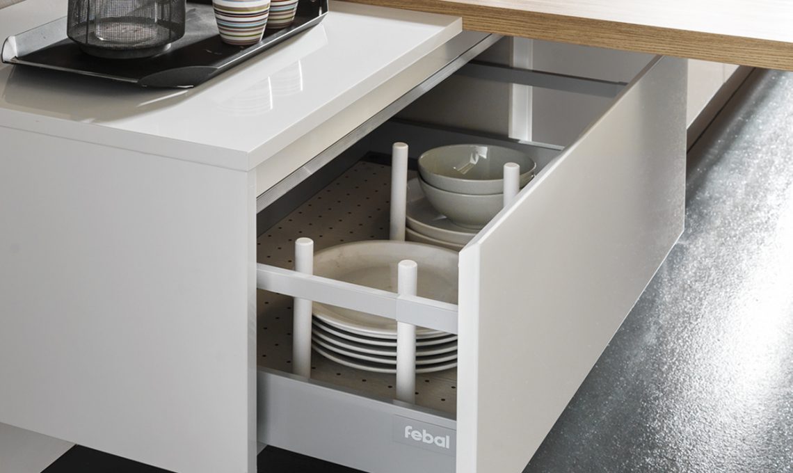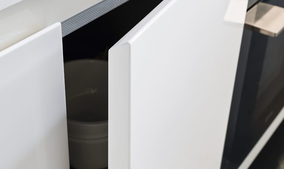 Il bianco lucido, scelto per tutta la cucina, è la base ideale per personalizzare l’ambiente al 100% con accessori e complementi dallo stile e dai colori più diversi, in base ai tuoi gusti.