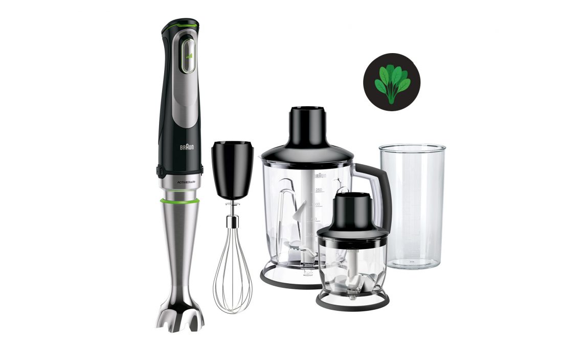 • Mixer: con un motore da 1.000 watt e base in acciaio inox, il mixer MultiQuick 9 è dotato di 3 tecnologie: ACTIVEBlade che fa oscillare verticalmente il gruppo lame, POWERBell Plus che permette di lavorare e sminuzzare ingredienti di grandi dimensioni riducendo lo sforzo del 40% e SPLASHControl anti-schizzo per una miscelazione perfetta e più agevole. [Braun, €150].