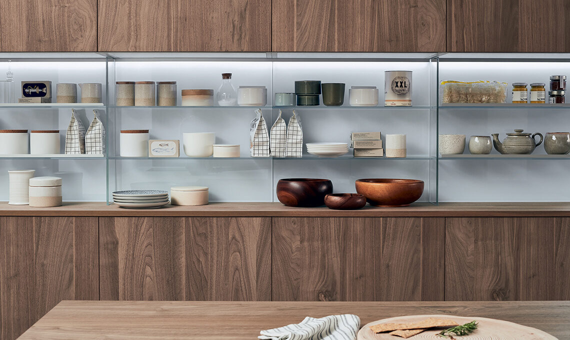 • A portata di mano: perché sprecare il prezioso spazio tra base e pensile? Puoi sfruttarlo con speciali boiserie dotate di ripiani per tenere tutto ciò che usi quotidianamente a vista e accedervi quando vuoi, senza sforzi.
