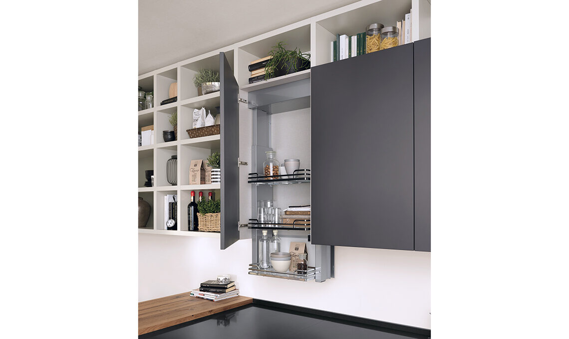 - Il sistema con saliscendi da inserire nei pensili semplifica la vita a tutti, ma soprattutto a chi è basso di statura o ha difficoltà a raggiungere i punti più alti del mobile. Motorizzato, è ideale anche per chi ha poca forza nelle braccia.