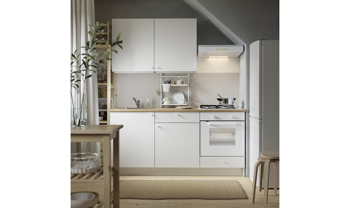 Basic ma iperfunzionale questa composizione della cucina Knoxhult in truciolare e lamina di melammina, che in 220 cm ospita tutto quello che serve per ottenere il massimo.