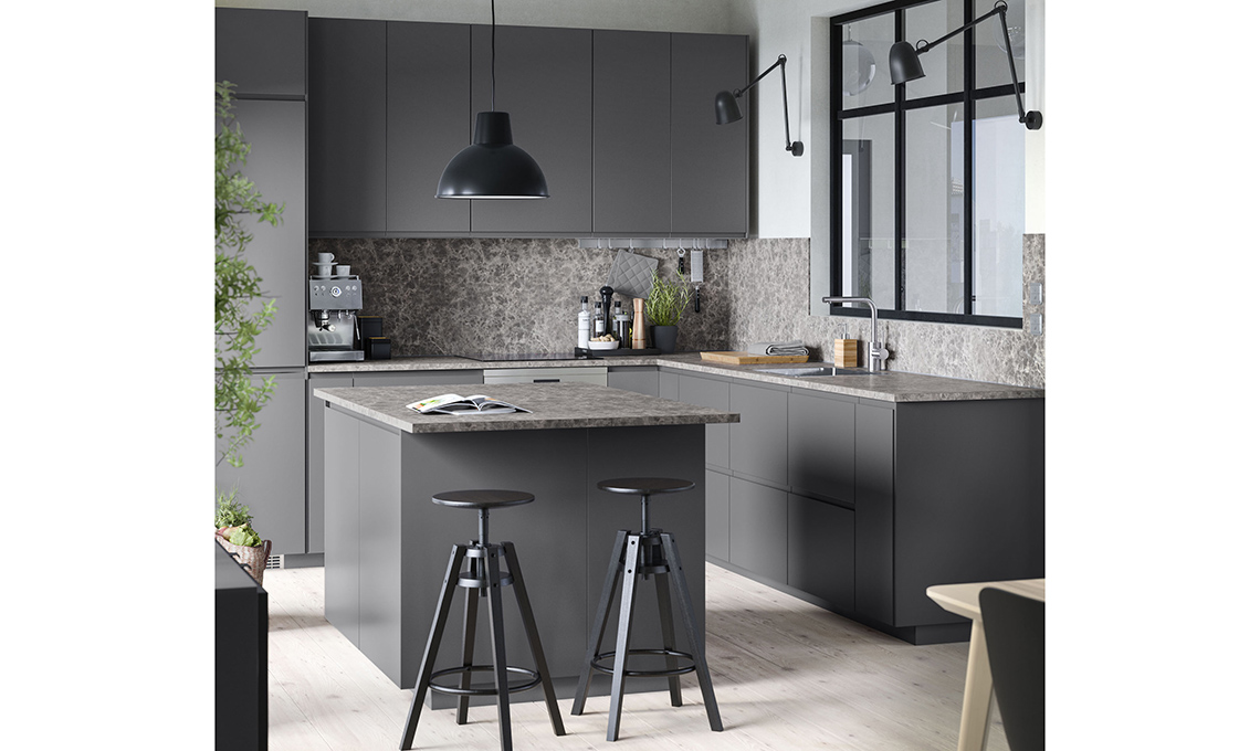 Stile moderno e minimalista per la cucina Metod con anta Voxtorp in un’elegante finitura grigia opaca, grazie alle maniglie integrate quasi invisibili con bordi arrotondati e una profondità che garantisce una comoda presa. Si completa con lo zoccolo e le liste di finitura coordinate da usare sottopensile per nascondere le luci o soprapensile per rifinire pensili e colonne. Si può coordinare con i moduli Vadholma che permettono di creare infinite soluzioni, alternando ante chiuse ed elementi a giorno. Per tenere a portata di mano quello che usi di più o lasciare a vista i tuoi oggetti più belli.