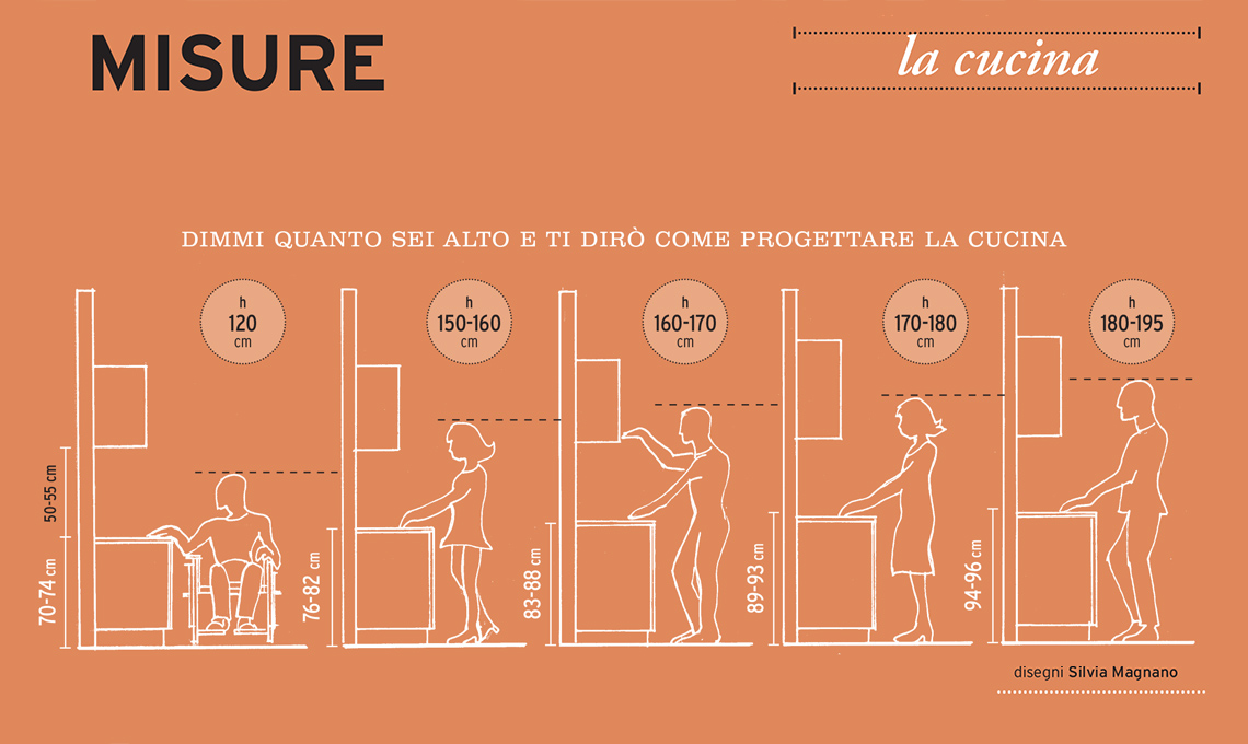 Persona alta 160/170 cm in questo caso le basi della cucina saranno 83-88 cm;