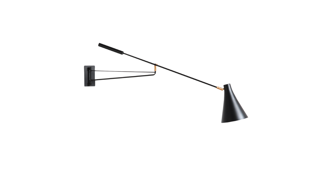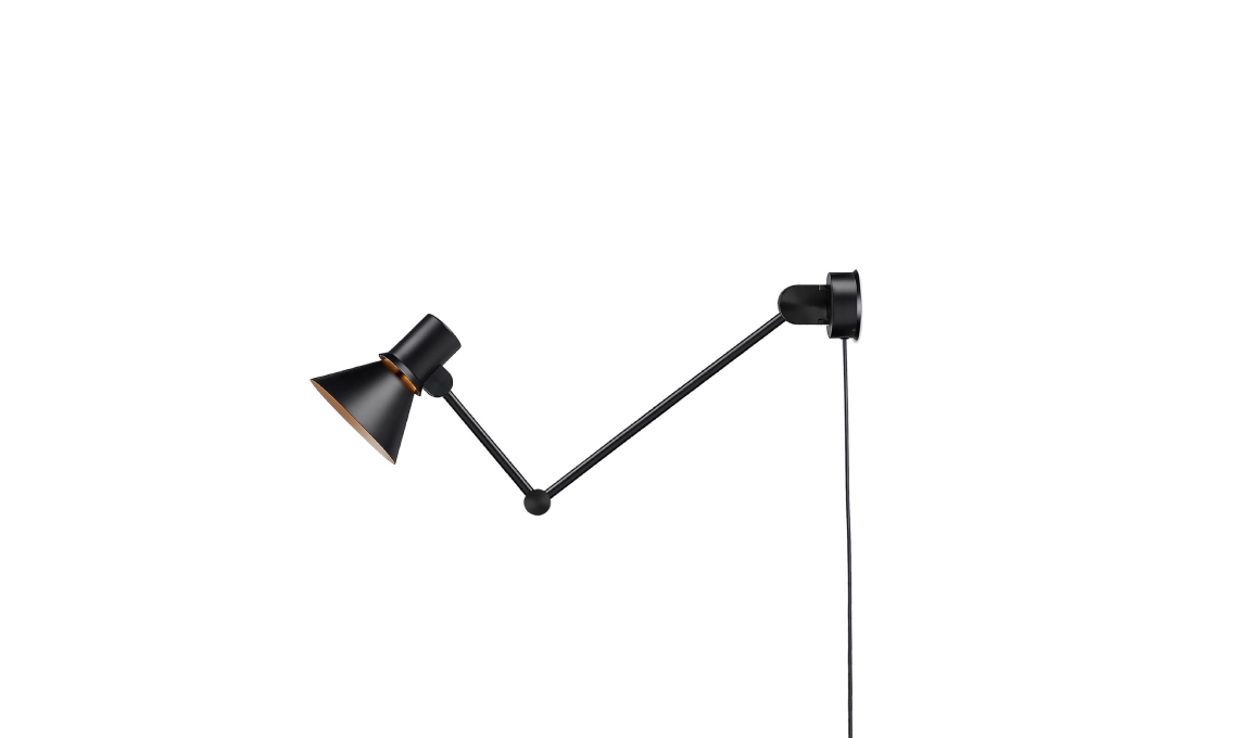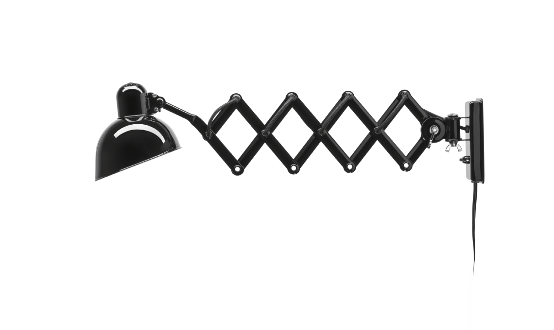 in metallo nero ha braccio estensibile a pantografo [Fritz Hansen, cm 16,4x47/89x14,8h].