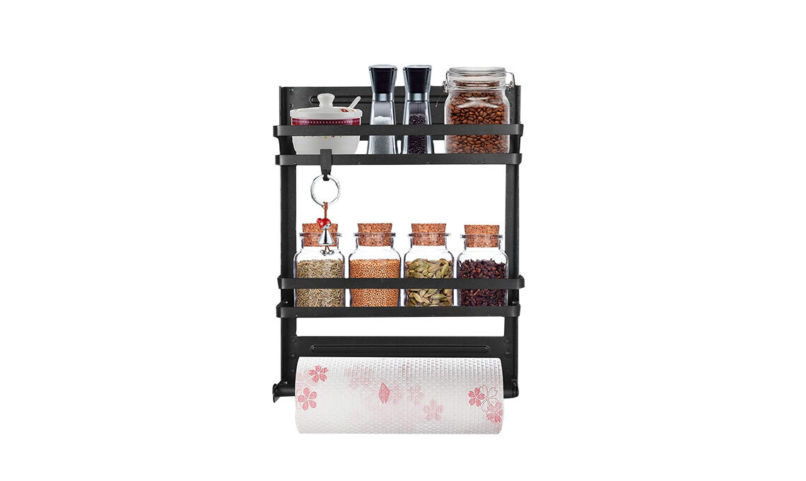 Porta-spezie e rotolo Lemecima con retro magnetico da fissare al frigo [su Amazon].