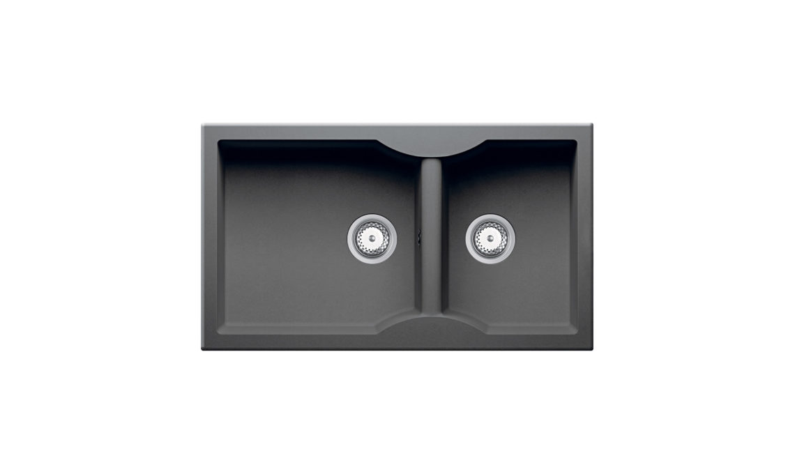 In resina: Aeolia da incasso è color grafite. A una vasca e mezza, è super resistente ai graffi e richiede manutenzione minima [LeroyMerlin, cm 86x50].