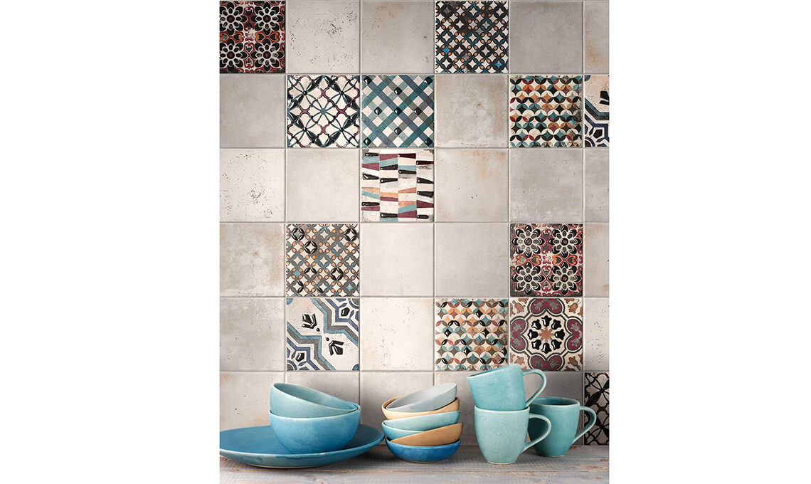 Old style: la collezione Abitare decoro Tappeto, in grès porcellanato antisdrucciolo, riprende i disegni dei pavimenti di un tempo [Ragno].