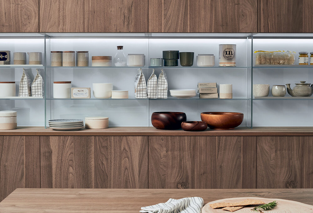 Tutte cose che puoi vedere in questa versione di Kronos di Arredo3, in cui l’eleganza delle linee rigorose si abbina perfettamente all’aspetto ‘eco’ dei materiali di basi, pensili e colonne, in impiallacciato realizzato recuperando travi strutturali di vecchie abitazioni.