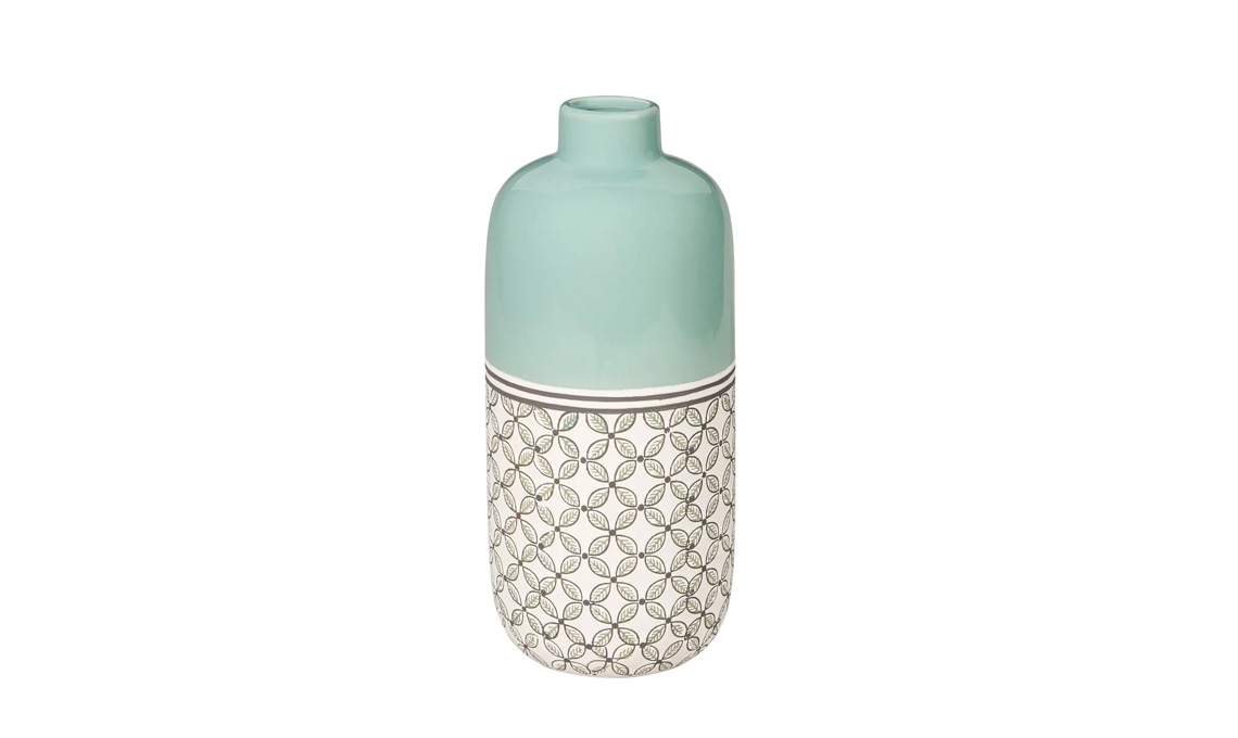 Non potranno mancare i vasi per raccogliere i fiori freschi. Tra le novità più interessanti, il vaso in ceramica Kilali di Maisons Du Monde caratterizzato da bellissimi motivi in ceramica in contrasto con un verde menta decisamente primaverile.