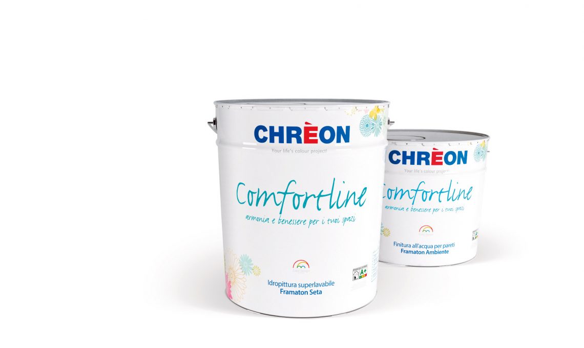 Pitture Framaton Seta e Framaton Ambiente della linea Comfort Line [Chreòn, da 10 o 14 litri, prezzi su richiesta]. Leggi sotto le altre catatteristiche di questa linea innovativa