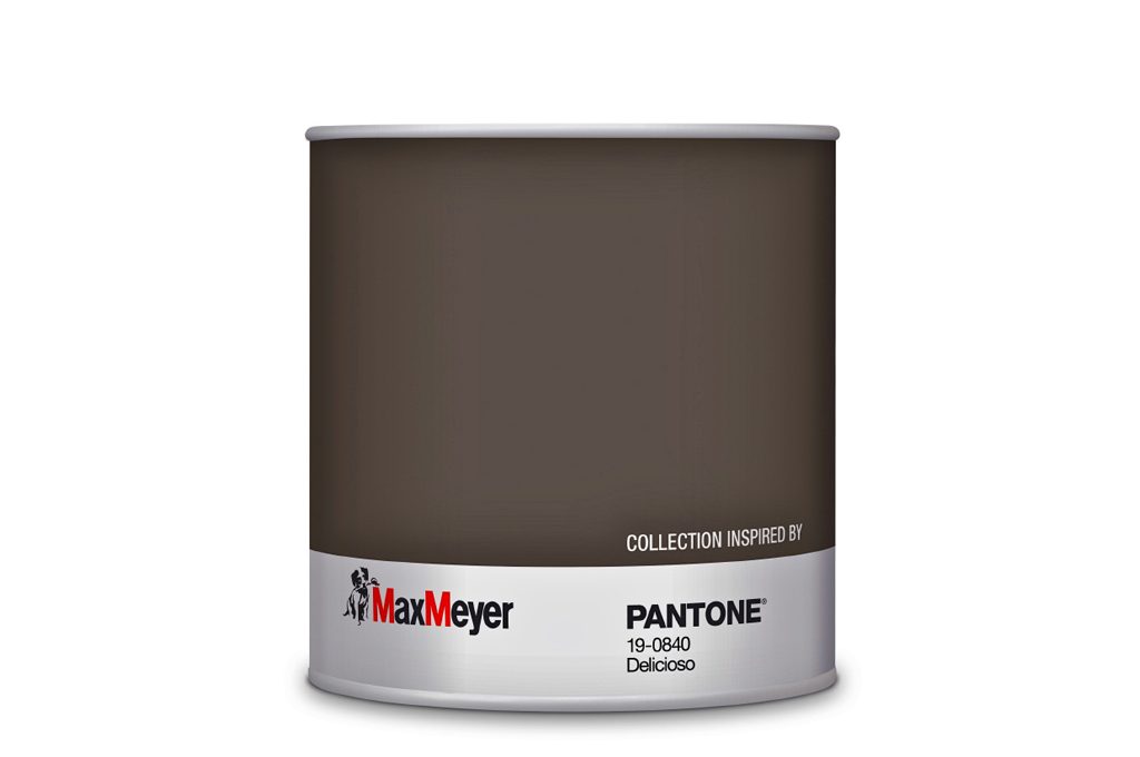 È denso e vellutato come la cioccolata calda, lo smalto murale inodore ad alta copertura Delicioso, della Collection Inspired by Pantone® [Max Meyer €16,90/500 ml].