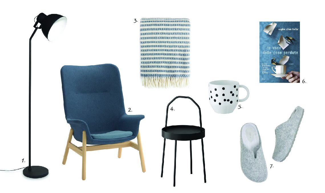 - Immancabile il tavolino, per appoggiare occhiali, smartphone, riviste e biscotti. Burvik di Ikea è perfetto con il manico che permette di spostarlo facilmente, avvicinarlo, in modo da avere tutto a portata di mano e poter essere più pigri!