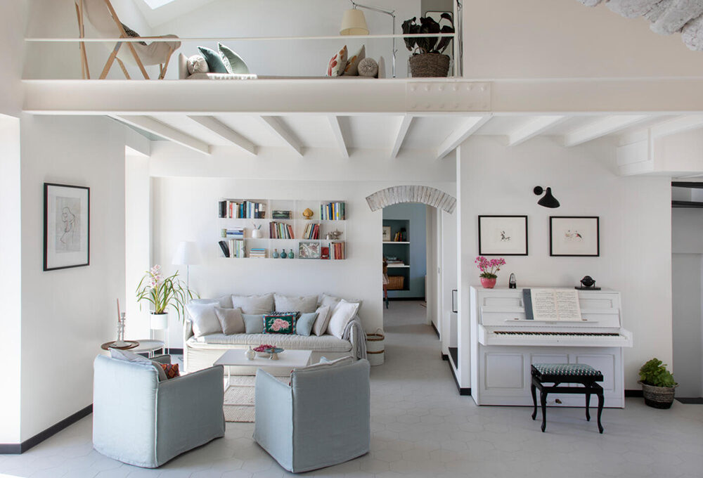 E in presenza di ambienti neutri dominati dal bianco, gioca con le sfumature marine, con il verde e con le texture della pietra.