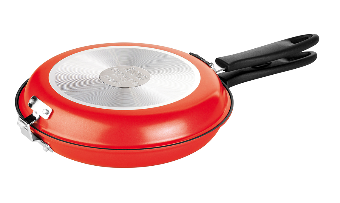 PADELLA DOPPIA: formata da due pentole antiaderenti unite da una cerniera (utilizzabili anche separatamente), Presto è studiata per cuocere le omelette da entrambi i lati, girandole senza alcuna difficoltà [Tescoma, Ø cm 26 €27,90].