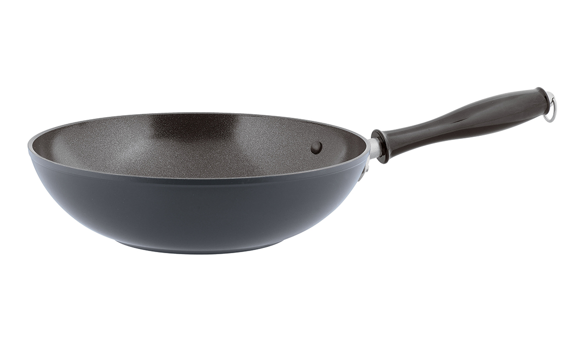 WOK: Spadella, della serie 1965 Vintage, ha il rivestimento Quarzo Nero e il fondo a doppio spessore. Per la cottura al salto e quella a vapore, per rosolare rapidamente e friggere [Sambonet Paderno Industrie, Ø cm 28 €64,90].