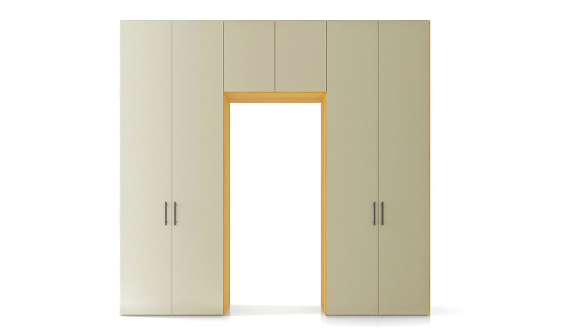 L’armadio da parete viene progettato con un modulo Ponte Passante, nelle dimensioni giuste per poter incorniciare una porta o un passaggio esistente e sfruttare